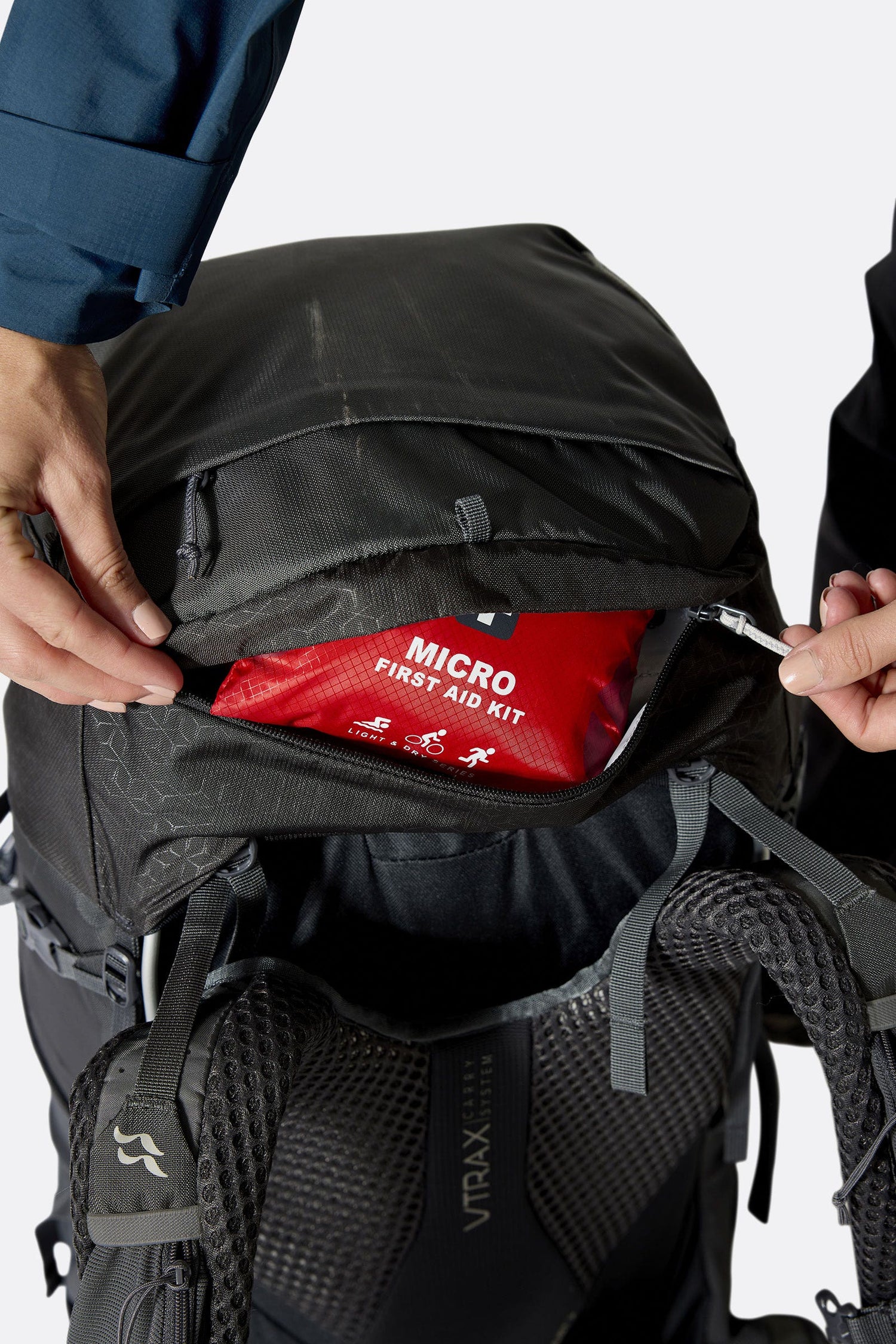 • The V-TRAX™ carry system incorporates a simple hook-and-loop adjustment mechanism for a precise and customised fit.