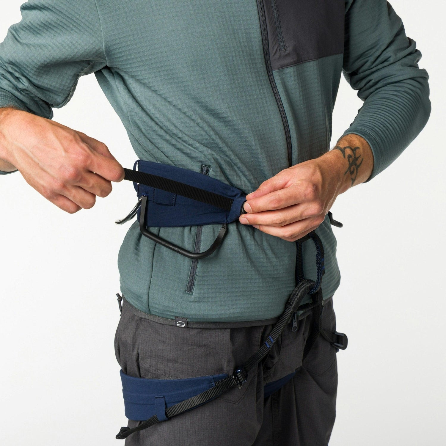 • The 3-webbing belt construction, paired with a wide waistbelt and leg loops, maximises support, comfort, and pressure distribution.