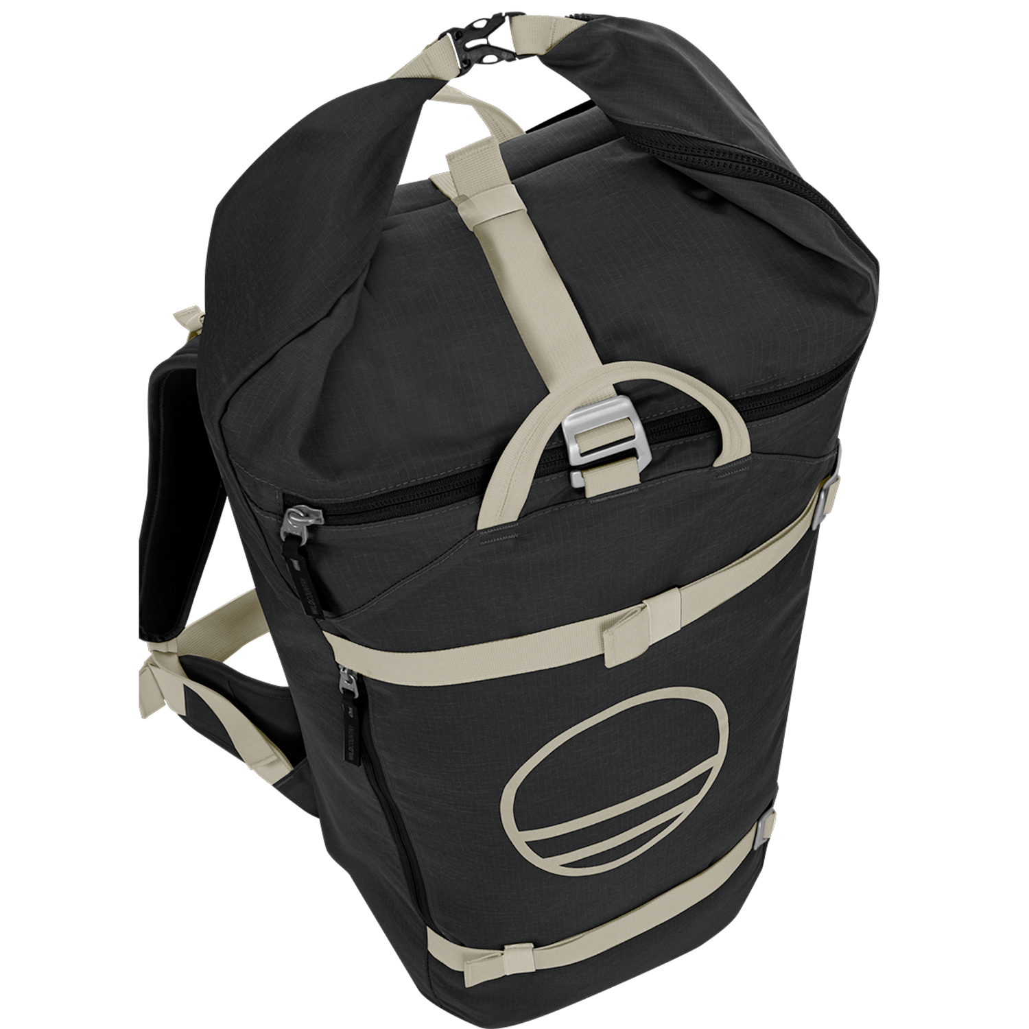 • Volume-adjustable compression straps ensure a stable and compact carry, even when partially filled.