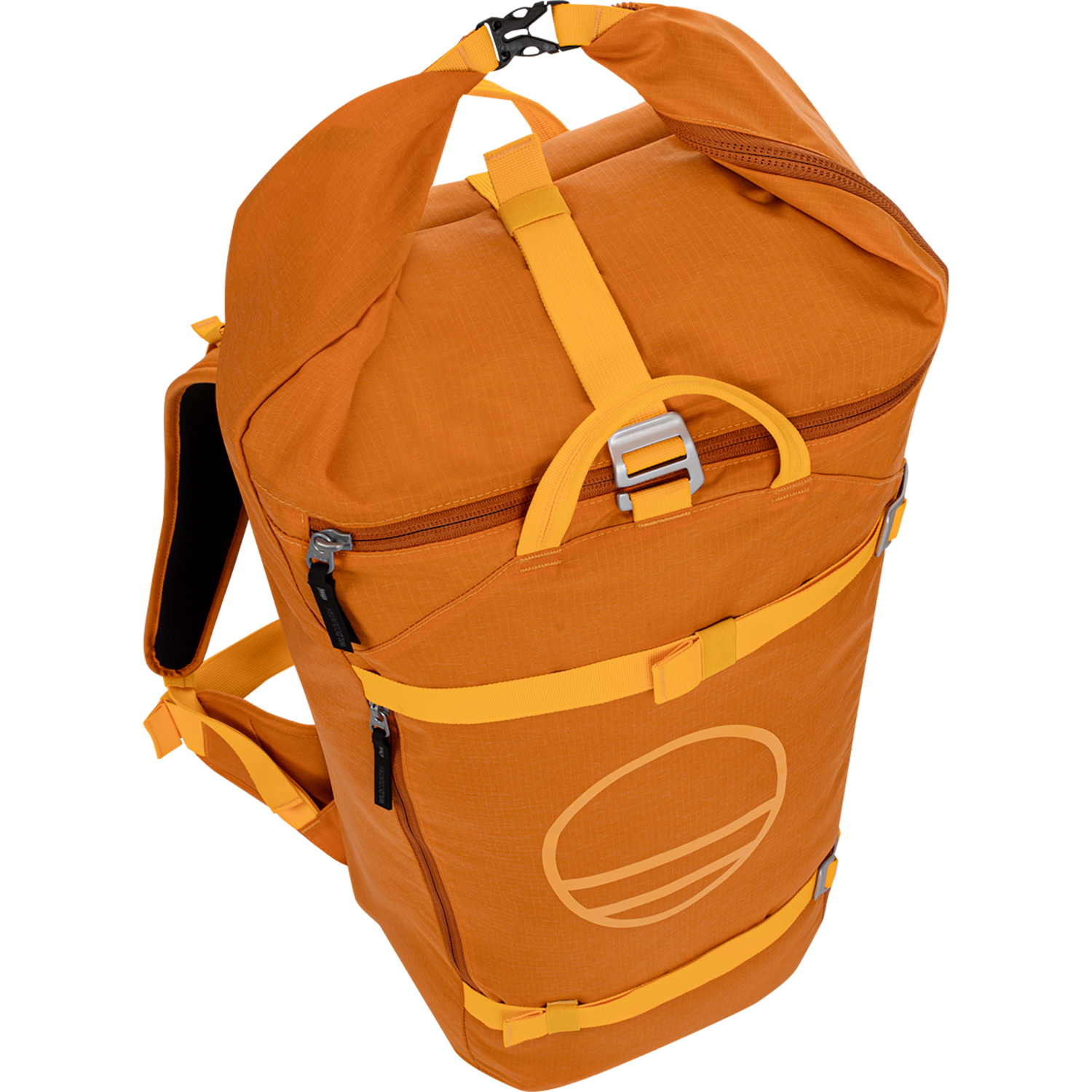 The spacious main compartment easily accommodates a double rack, harness, helmet, shoes, two half ropes, or an 80-metre rope, with extra room for clothing, food, and drinks. When it’s time to gear up, the wide-opening side zip and detachable rope tarp make racking and sorting hassle-free. For added convenience, you can secure your rope externally using the integrated strap with an aluminium buckle.