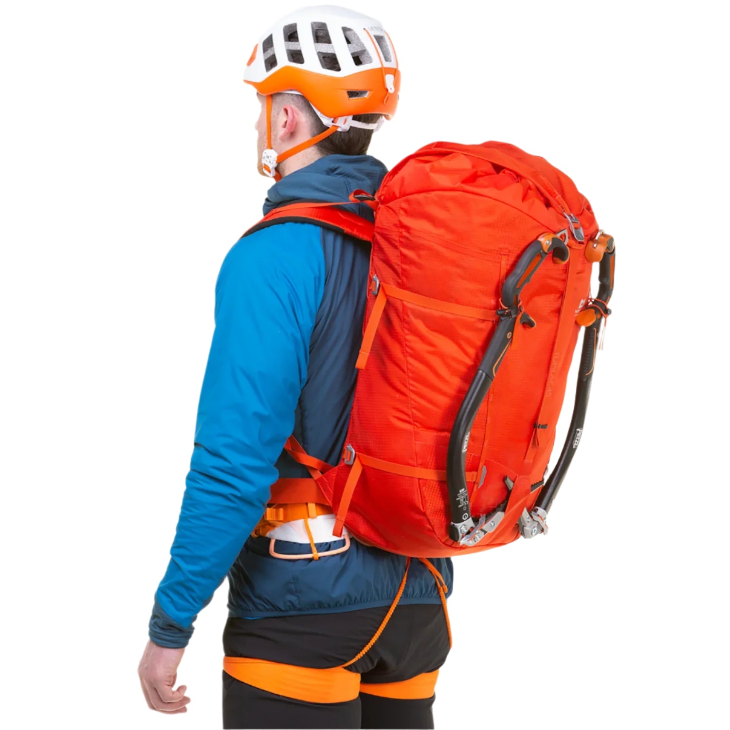 Its tapered hourglass silhouette is engineered for efficient packing and enhanced stability when climbing or hiking. A supportive EVA back panel improves load distribution and carrying comfort, while the high-density EVA foam shoulder straps are shaped for freedom of movement during technical ascents. Side compression straps with aluminium buckles help stabilise the load and are versatile enough to carry extra gear such as sleeping mats or skis. Additional aluminium toggles and bungee cords secure ice tools and expand load-carrying potential. For lightweight summit pushes, users can strip the pack of components such as the back panel, hip fins, compression straps, bungee cords, and ice tool toggles when not needed.