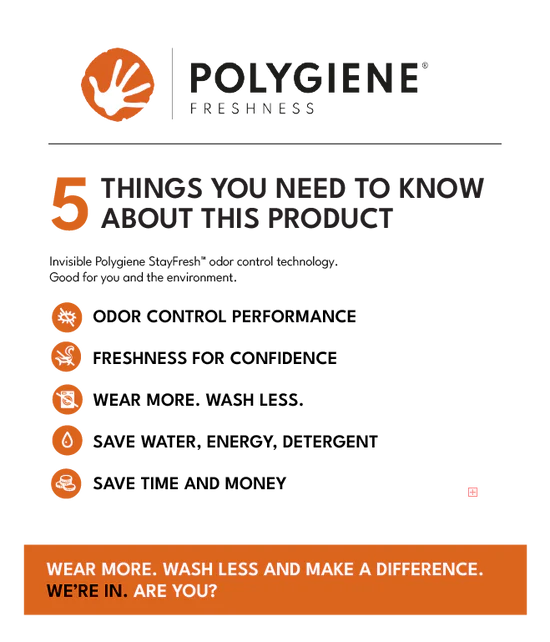 - Polygiene StayFresh™ technology helps prevent odour and reduces the need for frequent washing.