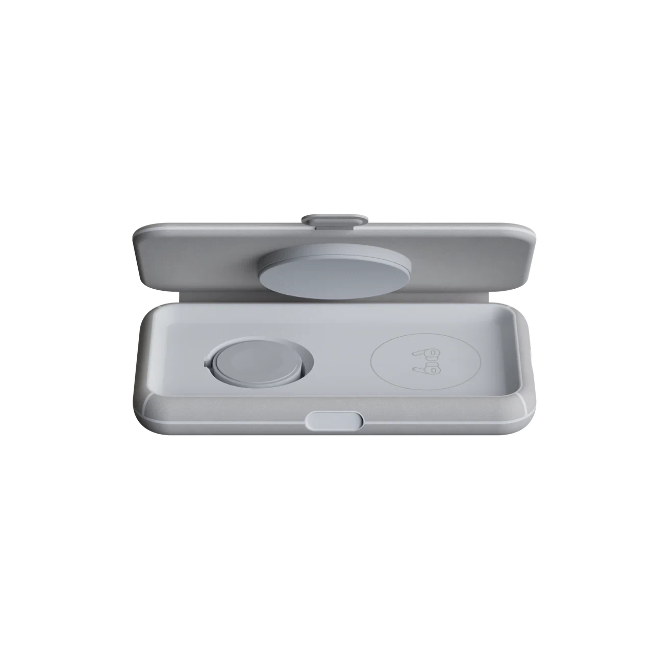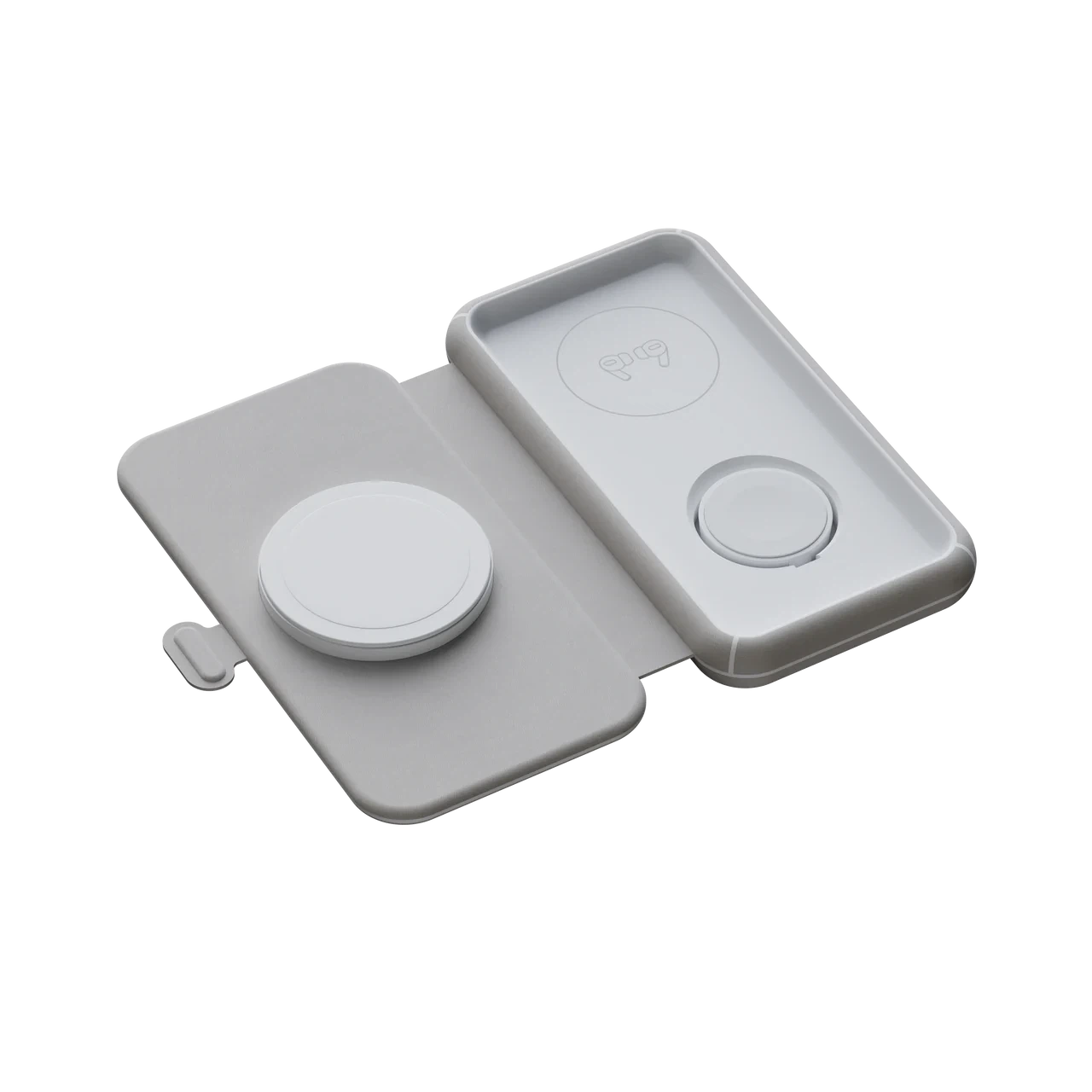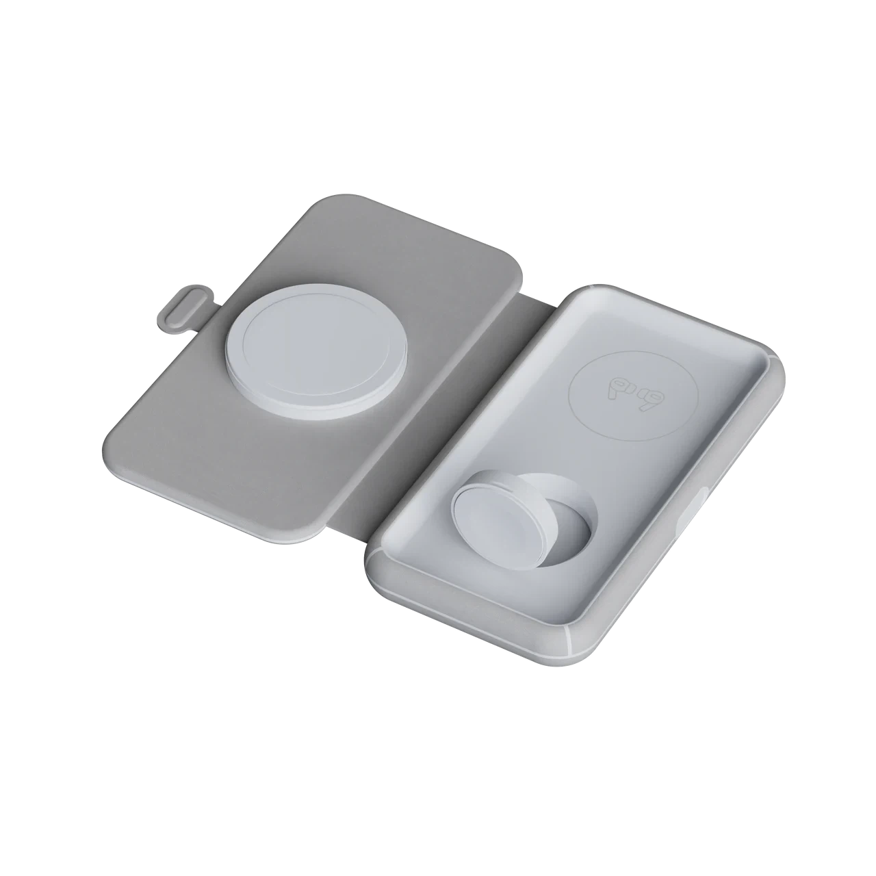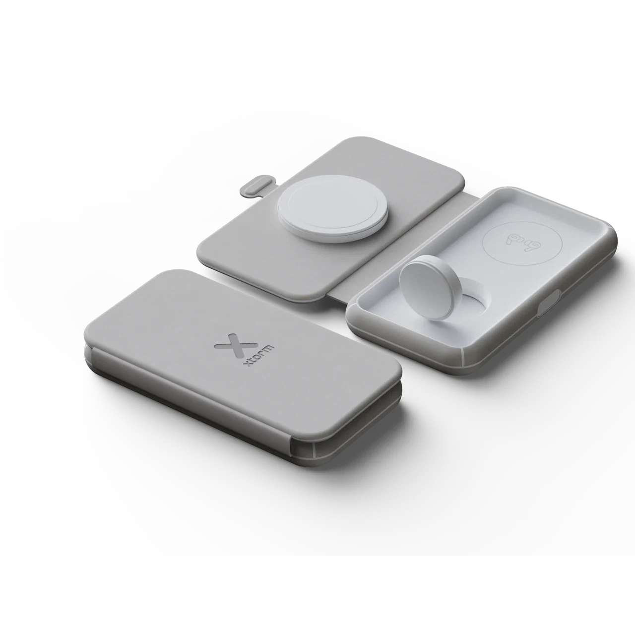 The small and compact 3in1 Foldable Wireless Travel Charger is made to give you a simple yet beautiful wireless charging solution. The charging pad folds out easily and thanks to the magnet, it folds in and stays folded, just as easy. The charger is slim and compact and fits into your bag. The calm grey colour complements every room in your house and looks great at the office.