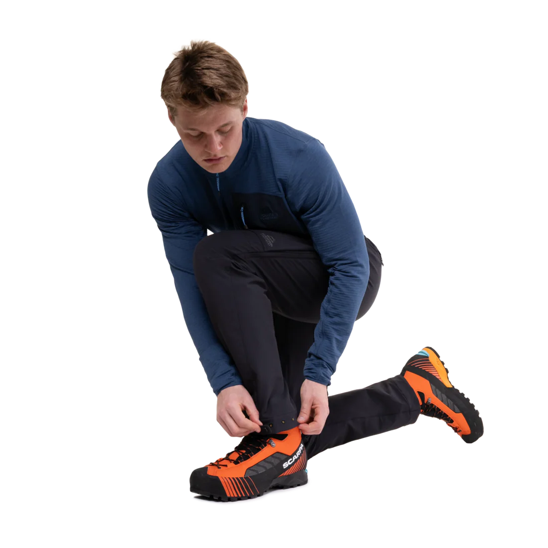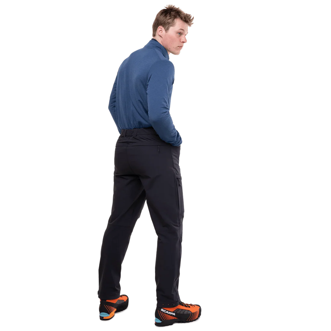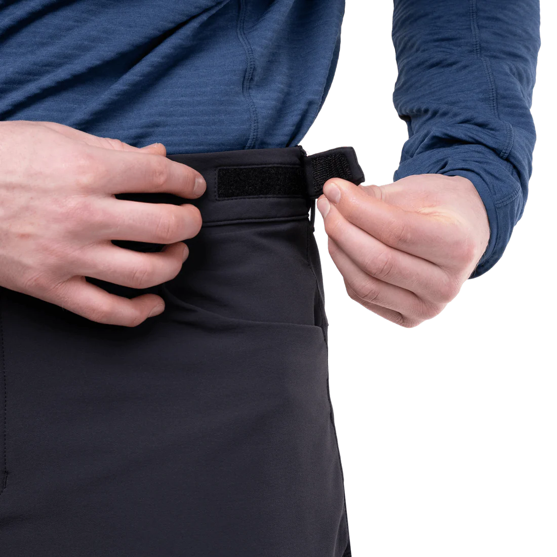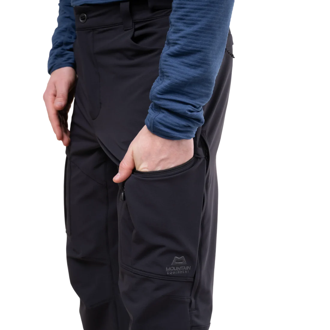 The waistband, adjustable and secured with a metal button, fits smoothly under a rucksack or climbing harness. Belt loops offer additional customisation. Two zipped hand pockets and two zipped rear pockets keep essential items within easy reach, while twin thigh pockets are ideally positioned for access when wearing a harness. Thigh vents on each leg offer welcome ventilation during demanding ascents or lengthy approaches.