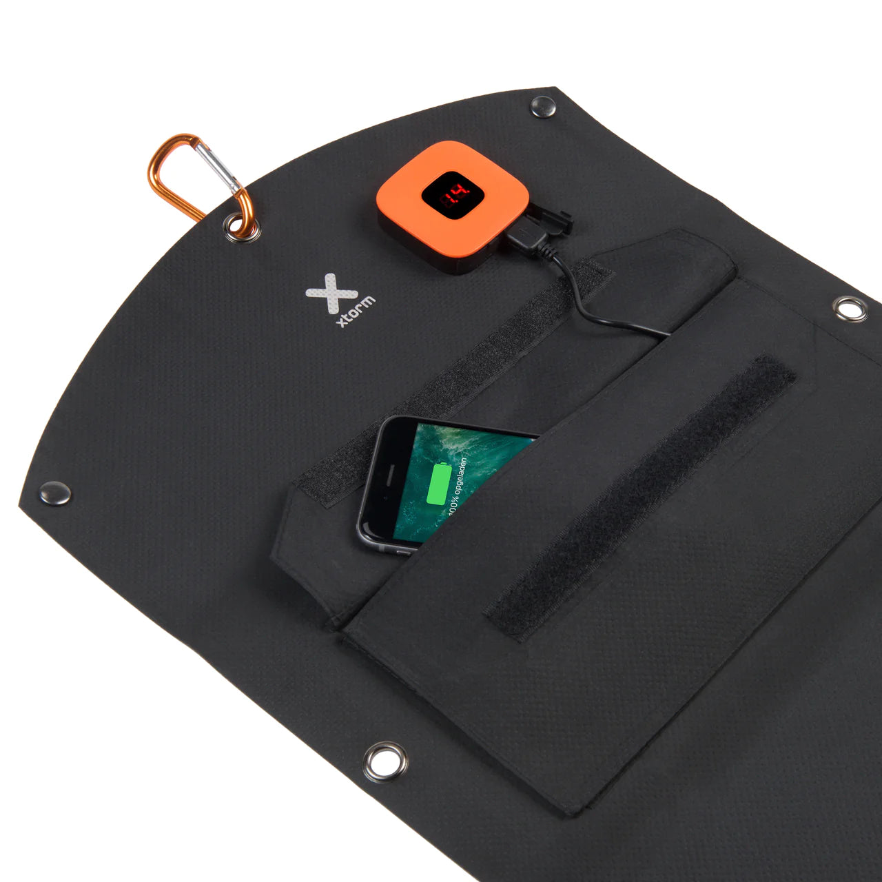 Thanks to the practical design and the carabiner that’s included, the SolarBooster 21 Watts panel can be easily fixed on a backpack, tent or bicycle. When the solar panel is not is use it’s easy to fold up and take with you. The material that’s used is strong, flexible and waterproof.