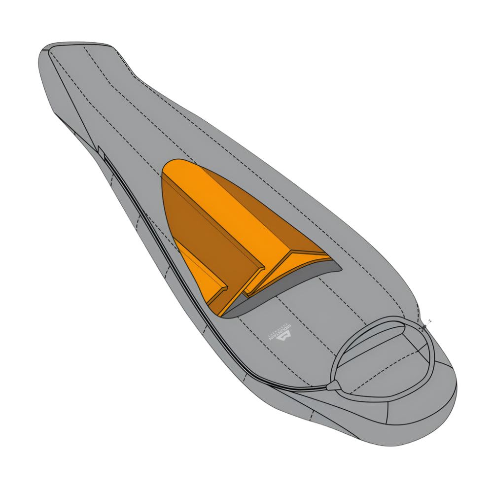 Mountain Equipment Nova III Women's Sleeping Bag in Ink/Pumpkin Spice - product preview showing Polarloft synthetic insulation and Mountain Fit construction