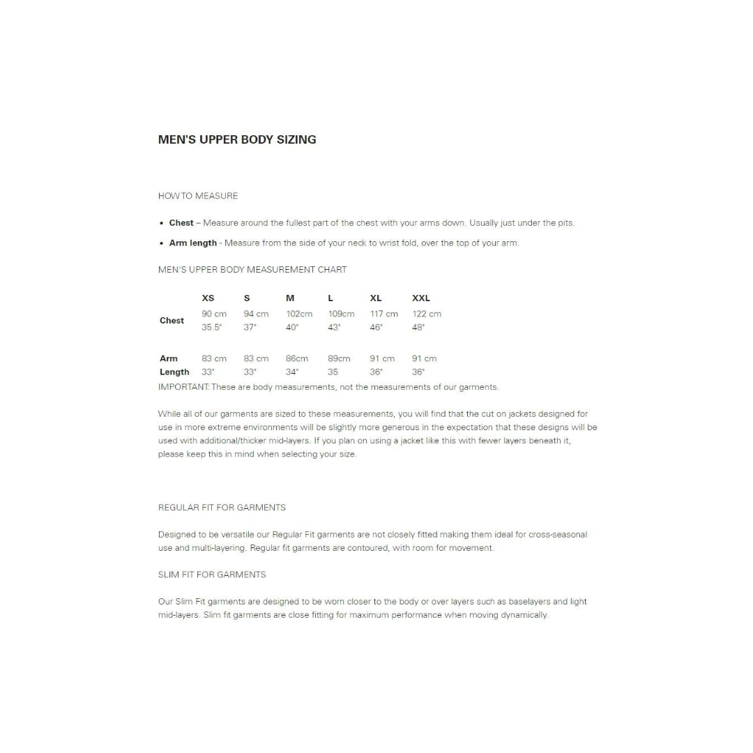 The Torque Jacket features a fully adjustable, helmet-compatible hood with a stiffened peak, ensuring clear vision in blustery conditions. The concealed cordlocks allow the hood to be cinched tightly when facing strong winds. A sturdy, two-way YKK® VISLON® front zip enhances ease of use with a harness, while the internal storm flap adds extra protection against wind and weather. The cuffs are adjustable with hook-and-loop tabs, and their extended design offers enhanced coverage over the backs of the hands. Complete with two zipped hand pockets, a zipped Napoleon chest pocket, an adjustable hem, and a regular fit, the jacket serves as a versatile outer layer or midlayer, providing convenient storage for essentials like gloves, snacks, or a compass.